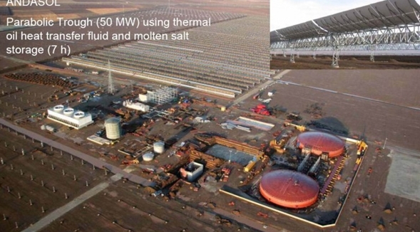 當前正在發展的技術方向為直接蒸汽(DSG)技術。典型的PTC發電廠動力范圍30-150MW,工作溫度約為400°C。如圖所示為目前世界上太陽能槽式發電站列表。