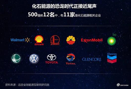 如果我們把視野轉(zhuǎn)到我們的經(jīng)濟(jì)社會,2015年的500強(qiáng)前12名當(dāng)中,你會發(fā)現(xiàn)有11家是化石能源相關(guān)的企業(yè),其中9家是化石能源的生產(chǎn)和交易商。