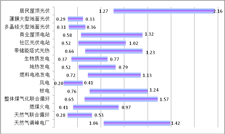 美國2017年的各種發(fā)電方式上網(wǎng)電價比較(單位:人民幣元/千瓦時)