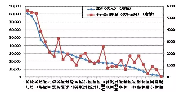 能源和電力消費(fèi)促進(jìn)區(qū)域經(jīng)濟(jì)優(yōu)先發(fā)展。能源消費(fèi)對各省發(fā)展起重要支撐作用,能源消費(fèi)總量和全社會用電量比較大的省份,經(jīng)濟(jì)增長規(guī)模也相對較大。廣東、江蘇、山東三省全社會用電量居全國前三位,三省經(jīng)濟(jì)總量也居全國前三位(圖2)。從單位GDP電耗來看,如北京、天津、上海等產(chǎn)業(yè)結(jié)構(gòu)相對優(yōu)化的省市單位GDP電耗較低,北京市2016年萬元GDP電耗不足400千瓦時,為全國最優(yōu)。經(jīng)濟(jì)大省廣東和江蘇萬元GDP電耗分別為694千瓦時/萬元和705千瓦時/萬元,均低于全國平均水平(圖3)。