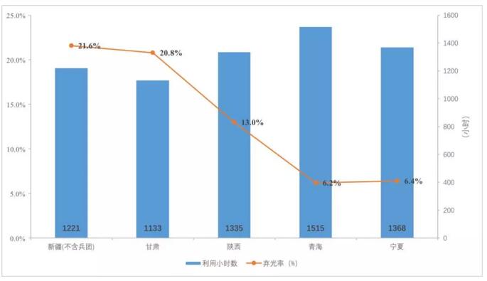 圖一:2017年西北五省(區(qū))棄光數(shù)據(jù)