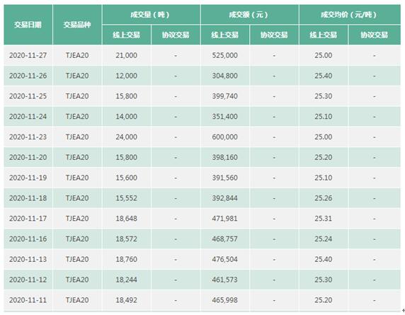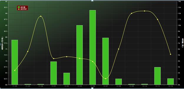 從2020年11月20日-12月16日數據來看,交易量高點為12月4日的12533噸,存在交易體量不足和價格波動較大等特點。