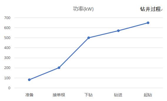 下圖是某鉆井過(guò)程的示意圖,主要是顯示各個(gè)過(guò)程的大致功率變化情況,不包含地質(zhì)等原因?qū)е碌呢?fù)荷突變情況。在實(shí)際情況中,每道工序時(shí)間不一樣,且每道工序里的負(fù)荷也是波動(dòng)的,這里未對(duì)細(xì)節(jié)進(jìn)行顯示。