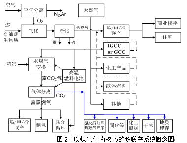 圖2以煤氣化為核心的多聯產系統概念圖