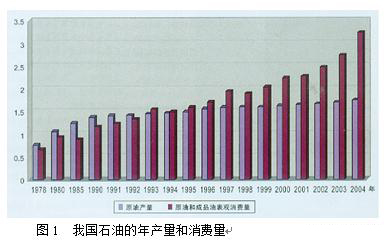 圖1我國石油的年產量和消費量
