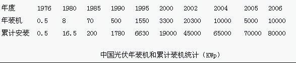 2006年國家提出建設社會主義新農村,農村電氣化便成為光伏發電應用的主要市場入口,截止到2006年底,我國太陽能電池的累計裝機已經達到80MW。我國目前有上百家的太陽能光伏企業,其中生產的太陽能電池組件90%以上出口到國外,國內市場僅占到小部分。
