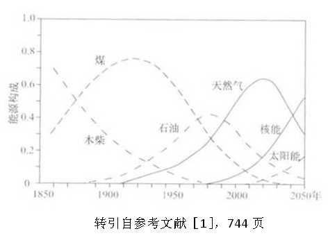 人類歷史上石油的發現和小規模利用已有很長的時間。早在19世紀初已開始蒸餾法煉油[3]。1859年美國第一口機械鉆井打出了工油流,標志著現代石油工業開始。此后,經濟需求和技術發展促進其產量以加速度增長。他用了約100年的時間才完成了向石油時代的過渡。此實例與從薪柴時代向煤炭時代的轉變類似,向我們表達了一個信息;從新能源的產生到他替代舊能源而居于明顯領先的地位需要一個不短的歷史過程。這與社會經濟制度的變化類似。換言之,舊能源舊體制有著相當大的發展慣性。之所以出現這類現象受兩類因素制約。第一,生產的發展主要依靠科技進步,而后者有個長期積累逐漸發展的過程,有個在前人基礎上繼續攀升的過程,他絕不能一蹴而就。第二,世界發展有明顯的不平衡性,經濟發展的巨大差距使有些國家/地區油氣成為成為能源構成的主力,但另一些國家/地區可能還停留在煤炭、甚至薪柴時代。這樣,以全球均值計的進入石油時代的時間就可大為推后。從全球歷史發展角度審視,科技發展和不平衡性的減弱兩因素都有逐漸加速的趨向。似乎可預言:隨時間推移能源時代的更替會有加快之勢。