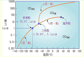液體二氧化碳釋放到常溫、常壓環境會生成干冰(部分CO2大量吸熱造成另一部分CO2凝華)。CO2沸點(升華點)-78.6℃低于熔點(三相點)-56.5℃,升華熱(溶解熱+汽化熱)540KJ/KG大于氣化熱350KJ/KG。這些特性決定了將CO2冷媒蒸發制冷作為熱機T2在理論上是可行的。CO2工質蒸發制冷不僅在熱的總量上大于乏汽的凝結潛熱,而且其絕對溫度也低于乏汽溫度。