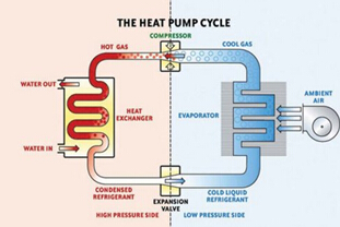 熱泵采用低沸點工質,借助壓縮機將熱從低溫傳到高溫,制熱的同時制冷。換言之,制冷的同時制熱(例如空調向室內送冷時,向室外排熱)。同時有效利用冷和熱等于將熱泵能效提高1倍,稱為雙向能效(COPThermalCouple)。