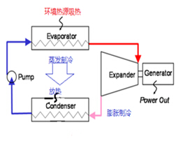 氣體性質與體積、溫度和壓力三要素有關。在空間不變的情況下,提高溫度,氣體的壓強增加。反之降低壓力,溫度下降。如果增大空間(體積變),氣體的溫度和壓力都會下降。溫度和壓力正相關,與體積負相關。膨脹機節流膨脹指的是較高壓力下的流體(氣、液或兩相)向較低壓力方向運動遇到局部阻力對外輸出功,輸出的功以工質焓值降低為補償。工質減少能量而增加的吸熱能力稱為膨脹制冷量。從這個意義上說,機械能可以源于制冷過程。而變冷的工質可以自發的與環境換熱回補內能(高溫自發向低溫傳熱)。如果一種工質的臨界點在環境溫度區間,膨脹前后的溫差、壓差足夠大,就可以用來獲取太陽輻射能。