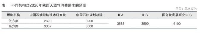 綜合考慮各種因素,國內(nèi)外咨詢機構(gòu)普遍預(yù)測“十三五”末我國天然氣消費增速將下降,2020年天然氣消費將在3000億~3600億立方米(見下表),低于國家發(fā)改委和國家能源局的預(yù)期值。