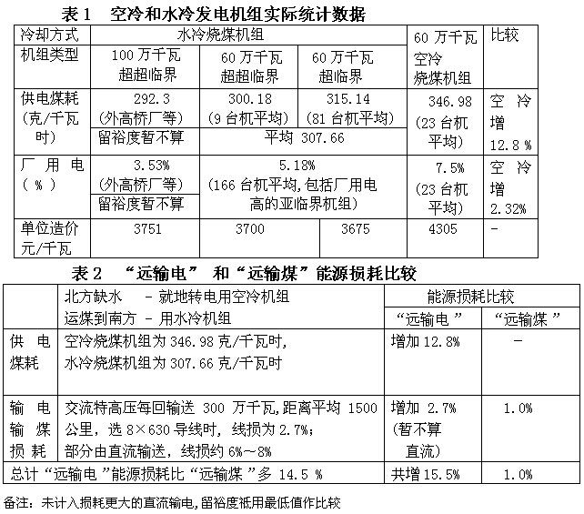 根據中電聯《中國電力行業年度發展報告》,近年發展的空冷和水冷發電機組實際統計數據比較(見表1):