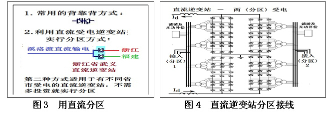 第二種是應用直流受電逆變站實行分區(qū)(圖3、4)