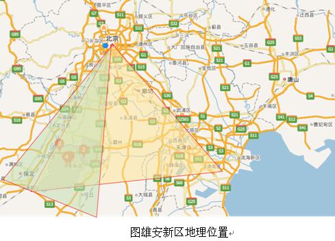 從地圖上看,毗鄰保定市區的雄安新區與北京、天津形成一個等邊三角形,可以與周邊幾個大城市形成半小時通勤圈區位。優勢明顯、交通便捷通暢、生態環境優良、資源環境承載能力較強,現有開發程度較低,發展空間充裕,具備高起點高標準開發建設的基本條件。