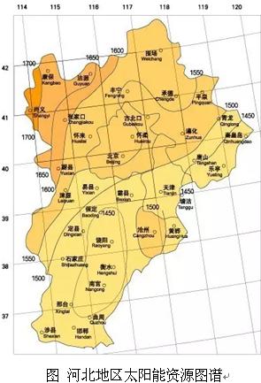 根據國家氣象局太陽能資源分布圖譜(見下圖),雄安地區年總輻射量在1450~1500kWh/m2,屬于太陽能資源"很豐富區"。優越的自然條件,有望為雄安的光伏產業發展添一把火。