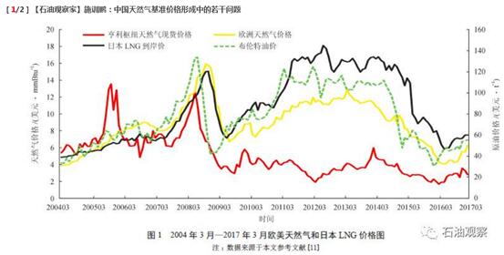 然而筆者認為以上研究成果的觀點有待于商榷。降低天然氣價格水平、獲取定價權或者議價權,都不應該成為改變當前天然氣定價機制的動力。新的"氣-氣"競爭的定價機制不一定會解決"亞洲溢價"的問題,"氣-氣"競爭最終形成的價格可能比目前的價格還高,也可能比目前的價格低。過分強調新的定價機制在解決"亞洲溢價"問題上的作用,不但不正確,還容易引起賣方的反感。從圖1 可以看出,2017 年3 月亞洲的LNG 現貨價格為7.5 美元/mmBtu(1 Btu= 1 054.350 J,下同),如果扣除液化成本,已經低于歐洲的天然氣價格(6.27元 /mmBtu)。也就是說,亞洲的天然氣交易實際上是享受了折扣,而不是溢價。如果單純地認為競爭性的本地基準定價是為了解決溢價問題,那么現在會失去形成基準價格的動力。
