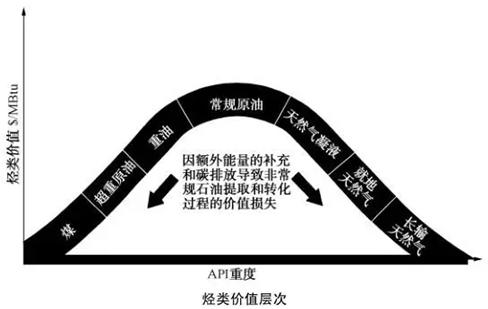 常規原油的烴類價值層次最高,在非常規油氣的生產和轉化中需要更多熱量,因此,促使其能源強度增大。生產常規石油只需本身6%的能量,而生產超重原油需20%~25%、油砂需30%、油頁巖需30%。生產常規天然氣所需能量相對較少,在氣層上鉆井,天然氣呼啦呼啦涌向井筒,付出能量較小,而生產非常規天然氣,特別是可燃冰,其特點是分散的,需要付出的能量更多,而且對環境污染大。當前還計算不出來生產1億立方米天然氣需要消耗本身多少能量??扇急紵芰空娴母邌??
