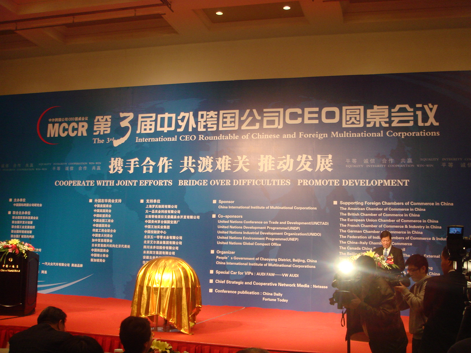 “中外跨國公司CEO圓桌會議”是由中國國際跨國公司研究會聯合國開發計劃署﹑聯合國貿易和發展會議、聯合國工業發展組織﹑聯合國環境規劃署﹑全球契約組織6個機構共同主辦的大型國際會議,已成功舉辦兩屆,受到國際社會廣泛好評。[詳細]