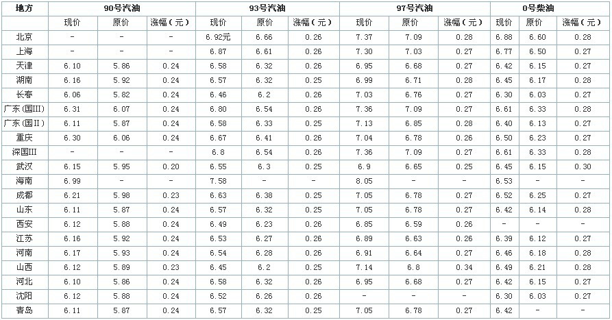 上調汽油出廠價格每噸200元;上調柴油出廠價格每噸150元;上調航空煤油出廠價格每噸300元 |