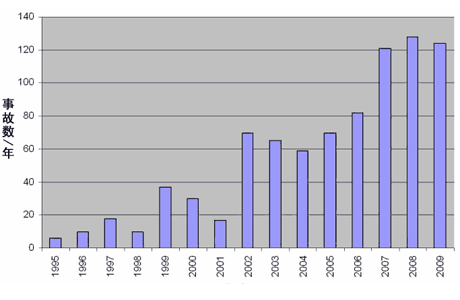 | 2010年1月20日 | 山西省大同市左云縣 | 2010年1月20日,常軌維護人員進行“風機葉片主梁加強”工作,期間因風大不能正常進入輪轂工作,直到1月27日工作結束。直到2月1日3:18分,之前43#風機無任何報警信息,發生了倒塌事件。[詳細] |
