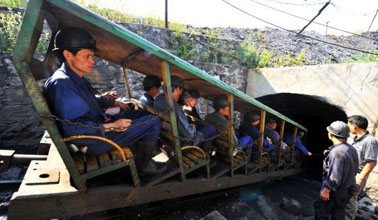 廣西來賓合山市,救援人員乘坐礦車下井實施救援。