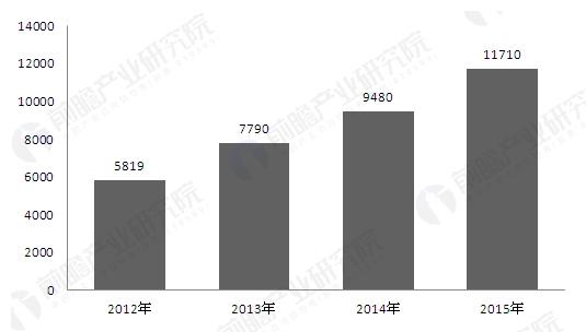 2012-2015年中國生物質能發電并網容量(單位:兆瓦)