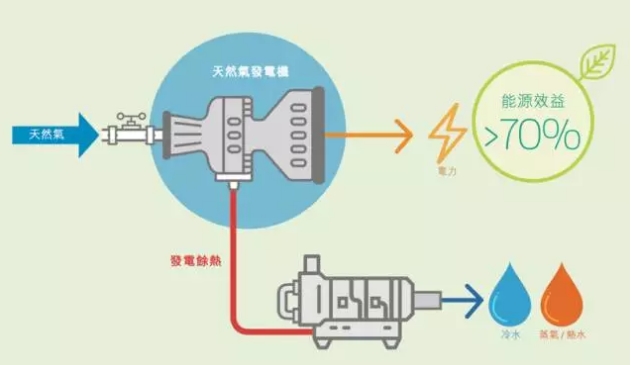有關技術利用冷、熱、電三聯供綜合能源系統,以潔凈的天然氣為燃料發(fā)電,通過使用天然氣產電,同時利用余熱生產蒸汽與制冷,從而實現對能源的梯級利用,其綜合能源效率可高達70%以上。