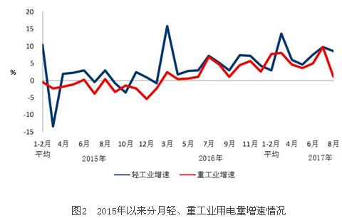 8月份,全國工業(yè)用電量3812億千瓦時,同比增長2.4%,占全社會用電量的比重為63.6%。其中,輕工業(yè)用電量710億千瓦時,同比增長8.6%,占全社會用電量的比重為11.9%;重工業(yè)用電量3102億千瓦時,同比增長1.0%,占全社會用電量的比重為51.8%。