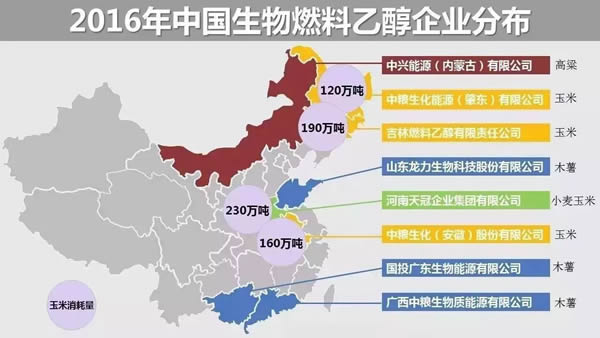 從上圖可以看出,發展生物燃料乙醇的區域大多在東北和中部的糧食大省。