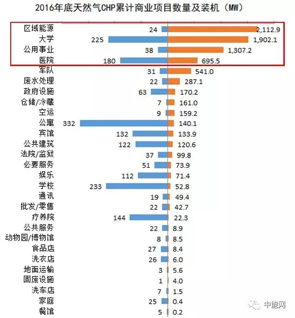 表:不同應(yīng)用領(lǐng)域天然氣CHP項(xiàng)目情況
