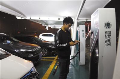 圖為一名車主在京港澳高速公路湖北赤壁服務區充電站為新能源汽車充電。新華社發(馬玲攝)