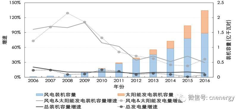 中國風電、太陽能發電裝機及發電量增速情況(數據來源:中電聯)