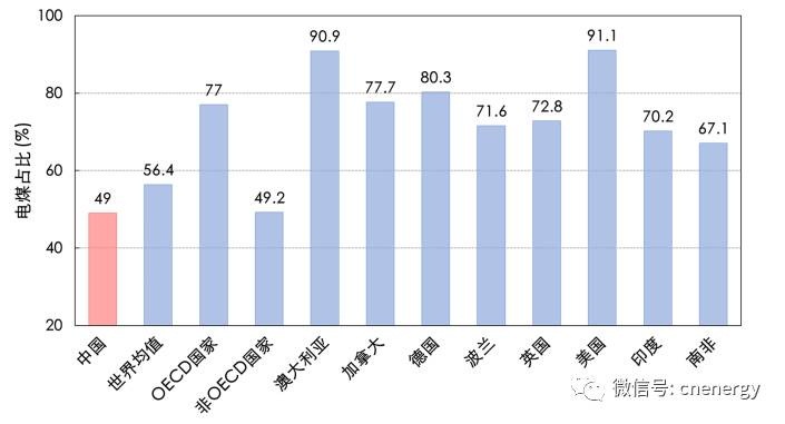 世界部分國家和地區電煤比重