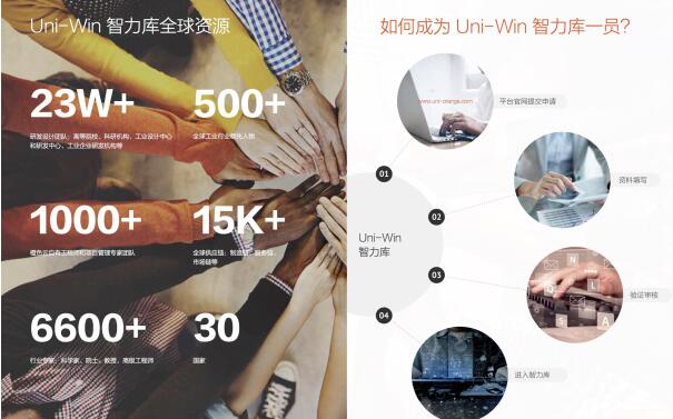 當前,由橙色云率先發起的“共創世界互聯工業設計新時代Uni-Win 戰略”,已經匯聚了超過230000成員的國內外研發設計團隊到Uni-Win智力庫中。這其中有著制造鏈、服務鏈、市場鏈等500+全球工業行業領先人物;全球高等院校、科研機構、工業設計中心和研發中心、工業企業、研發機構等15000+全球供應鏈。