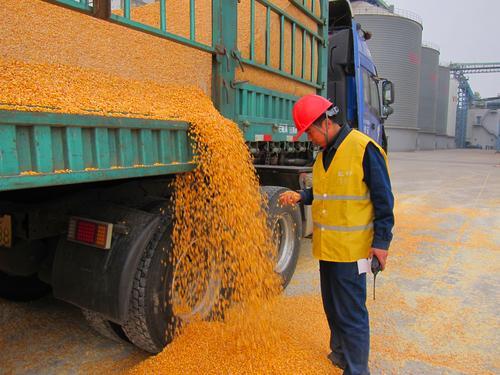 圖為采購人員檢查糧食品種。 張曉君 攝