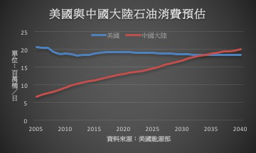 報(bào)告也預(yù)估,中國(guó)至2030年代初期將會(huì)超過美國(guó)成為全球最大的石油消費(fèi)國(guó),至2040年大陸石油需求預(yù)估將達(dá)到1,550萬桶/日。