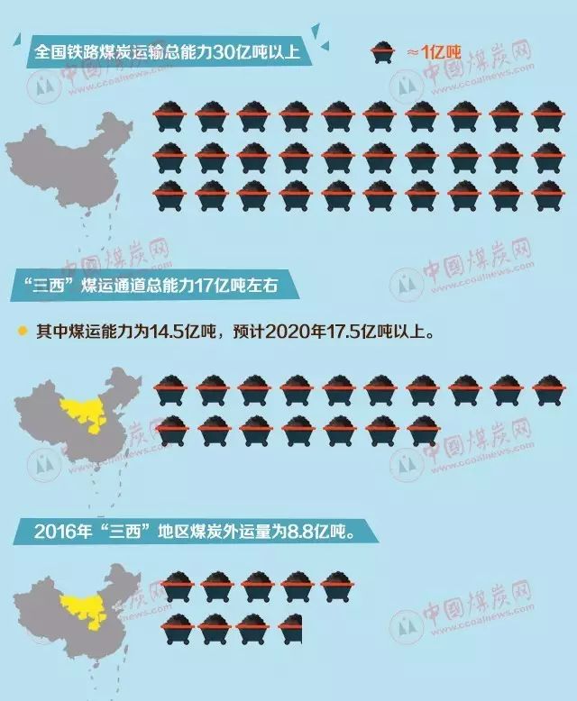 目前全國鐵路煤炭運(yùn)輸總能力約在30億噸以上,“三西”煤運(yùn)通道總能力約17億噸左右,其中煤運(yùn)能力為14.5億噸,預(yù)計(jì)2020年將達(dá)17.5億噸以上,2016年“三西”地區(qū)煤炭外運(yùn)量為8.8億噸。