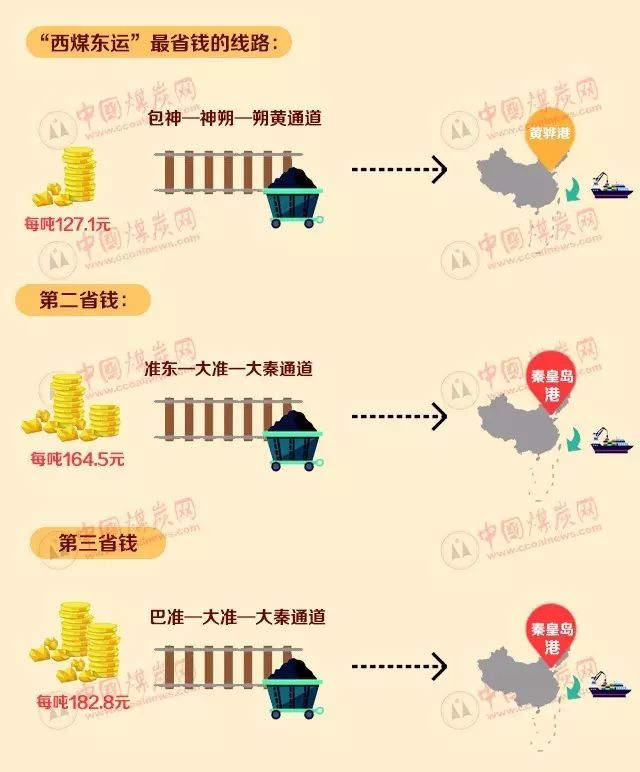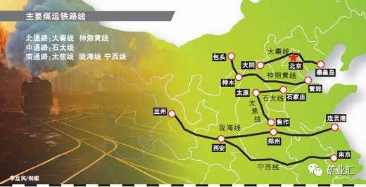 中國煤炭輸出量大,根據(jù)其方向,可分為北、中、南3路。