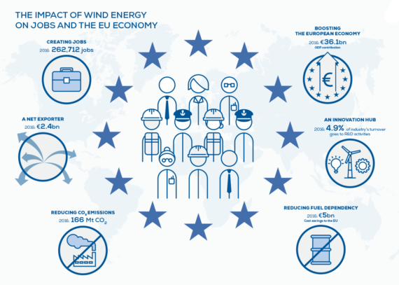 盡管如此,2016年,歐洲風能產業為歐盟GDP創收361億歐元,占歐盟GDP總量的0.26%。