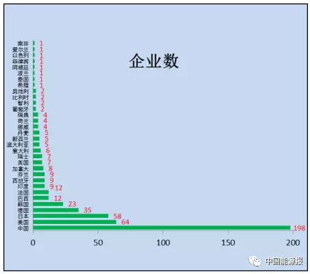 2017年 “500強”上榜企業分別來自34個國家和地區,比2016年 “500強”少2個國家。其中,中國(中國大陸及香港、澳門、臺灣)有協鑫(集團)控股有限公司、晶龍實業集團有限公司、常州天合光能有限公司、新疆金風科技股份有限公司、龍源電力集團股份有限公司等198家企業進入“500強”榜單,比去年(193家)增加5家,占39.6%,居首位;