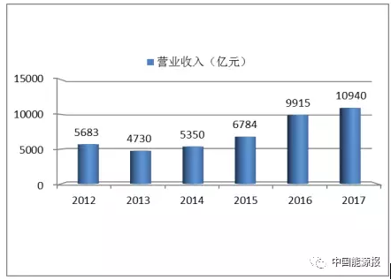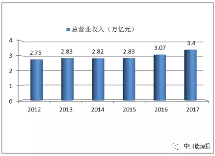 △ 圖2 2012-2017全球新能源企業500強總營業收入(萬億元人民幣)