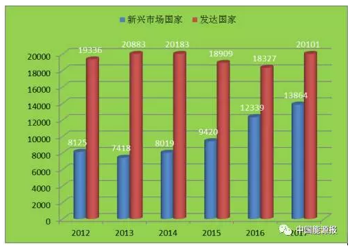 這兩年來,儲能市場開始快速發展,發達國家在相關技術及市場上發展比新興市場國家(中國除外)更成熟、快速,相關企業具有更強的競爭力和發展優勢, 這使得500強中發達國家儲能企業增長要比新興市場國家要快要多。因此,總體上就表現為新興市場國家的追趕腳步相對放緩。