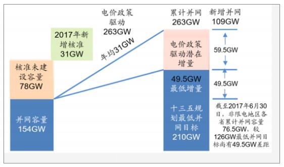 截至2016年底,我國已核準未建設風電項目容量合計78GW;2017年7 月國家能源局《2017-2020年風電新增建設規模方案》提出2017年新增建設規模30.65GW; 2017年上半年,國內風電新增并網容量6.01MW,預計全年在17GW。