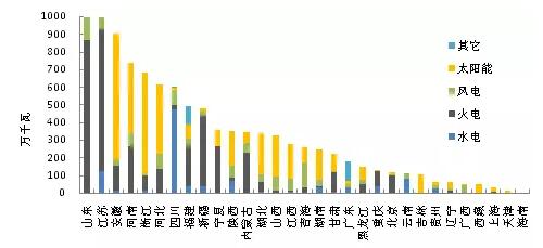 2017年1-11月,我國新增裝機主要集中在山東、江蘇、安徽、河南、浙江、河北、四川、福建等省份(新增裝機均在500萬千瓦以上),占新增裝機總量的62.1%;