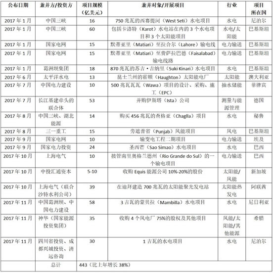 2017年中國在可再生能源、新能源、電網(wǎng)領(lǐng)域的主要投資項(xiàng)目