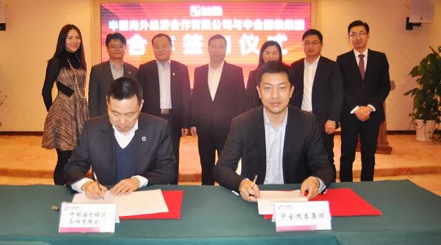 2018年1月11日,中國海外經濟合作有限公司總裁侯學軍一行拜訪中金國泰集團,雙方成功簽訂新能源合作協議,計劃共同成立新能源投資建設公司,充分發揮各自在資本、資源、人才、管理等方面的優勢,在清潔能源、金融、貿易、海外項目等領域開展全面業務合作。