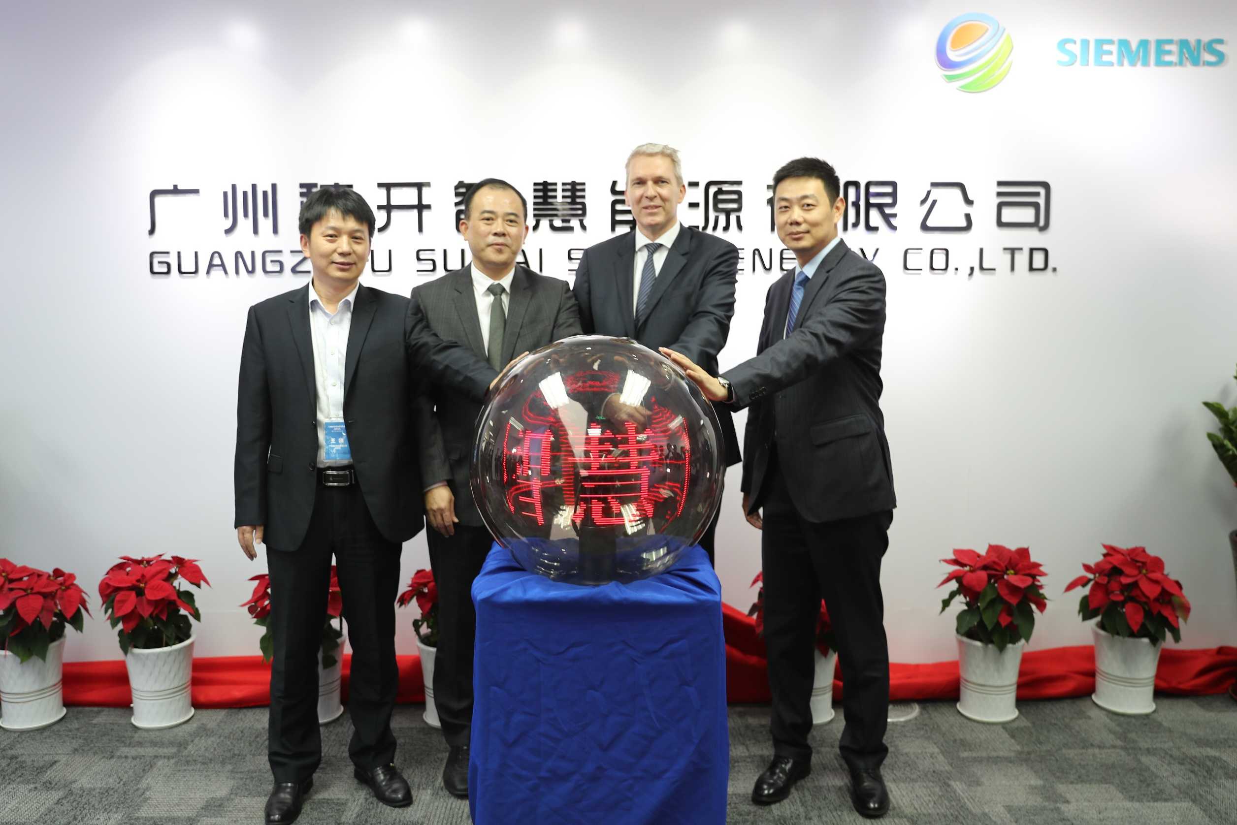 西門子與廣州穗開電業有限公司(穗開)今天正式宣布成立合資公司廣州穗開智慧能源有限公司,并于廣州開發區科學城商業廣場舉行揭牌儀式。廣州市黃埔區副區長洪謙,廣東省投資促進局局長孫斌,廣州開發區投資集團有限公司董事長郭杰鋒,廣州穗開電業有限公司董事長王領,西門子(中國)有限公司執行副總裁、西門子大中華區能源管理集團總經理麥明銳(Markus Mildner),西門子(中國)有限公司高級副總裁、中國城市能力中心總經理、華南區總經理商慧杰等領導出席了揭牌儀式。
