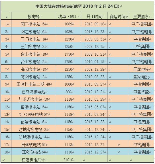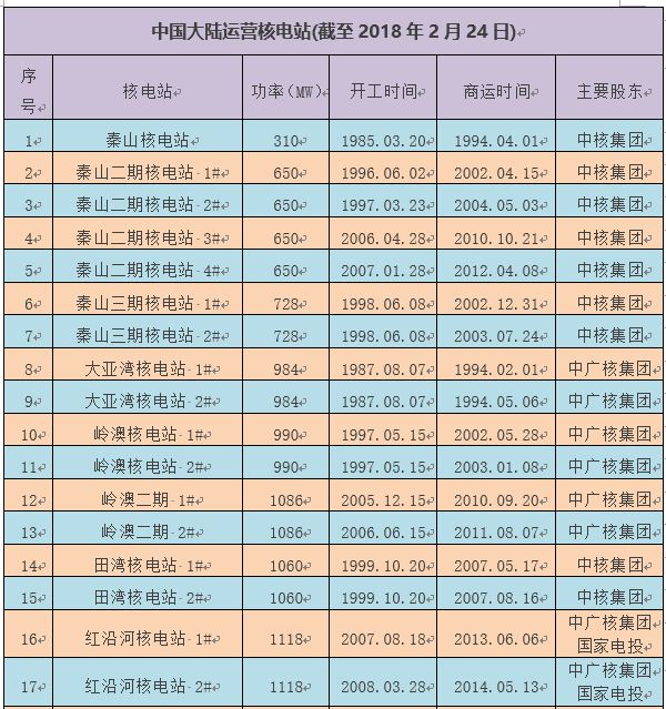 編者按:2月15日,又有一臺新的核電機組具備商運條件,小編整理了中國大陸已運營和在建核電站數據和精美圖片,與朋友們分享。