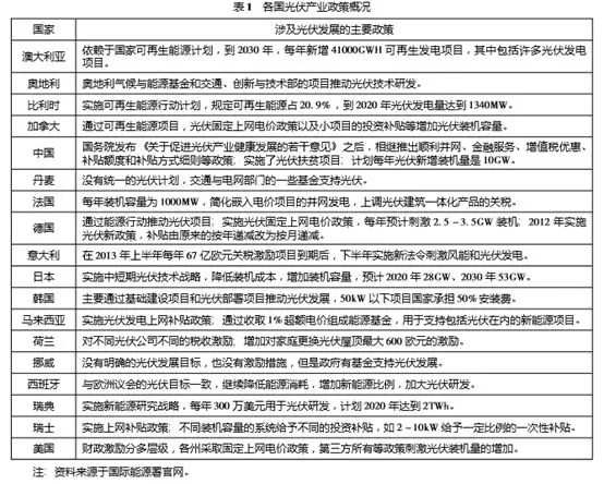 1各國光伏產業政策分析
