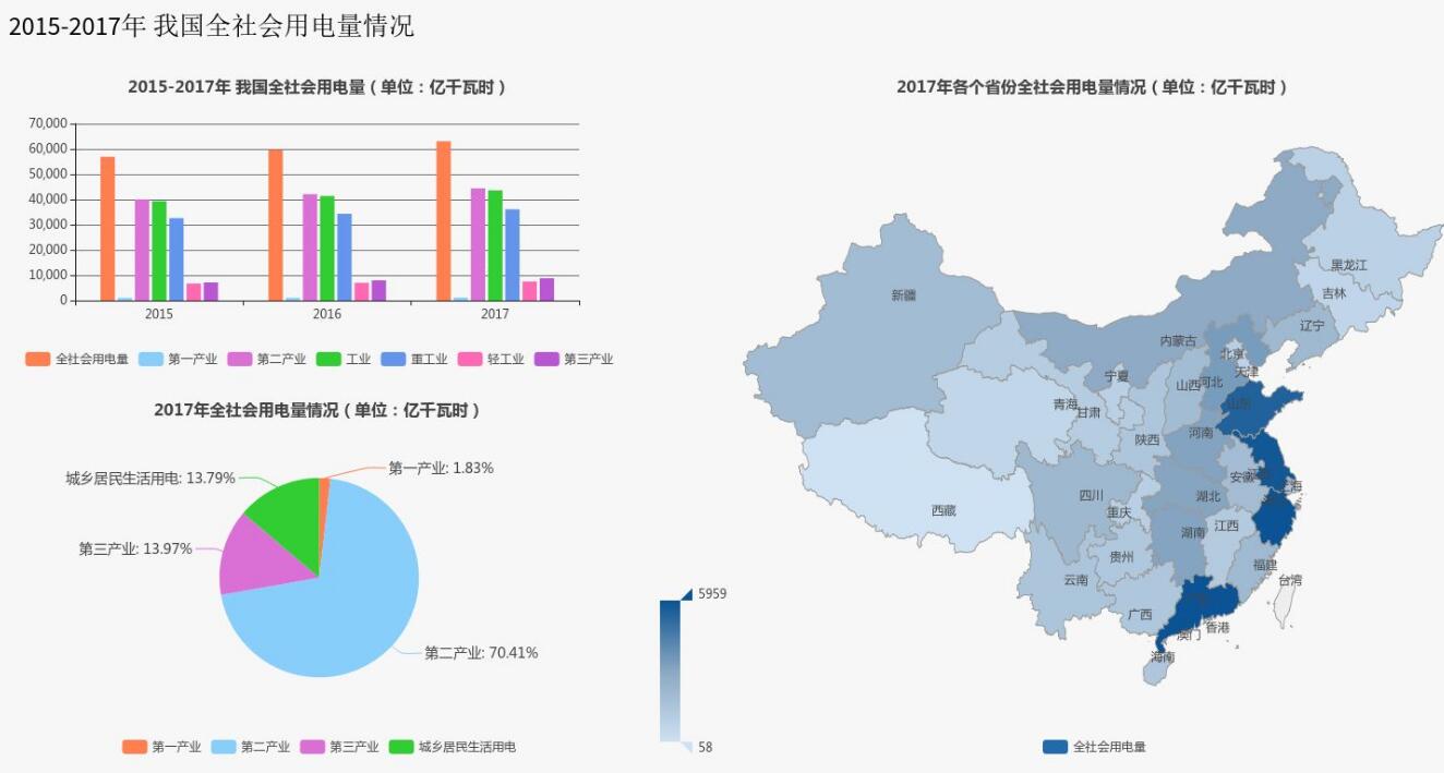 從全社會用電量總量上看,2017年,我國各個省(自治區(qū)、直轄市)全社會用電量東高西低的情況依然加劇。